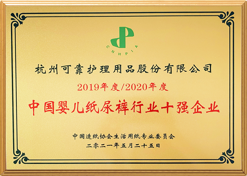 荣获“中国婴儿纸尿裤行业十强企业”