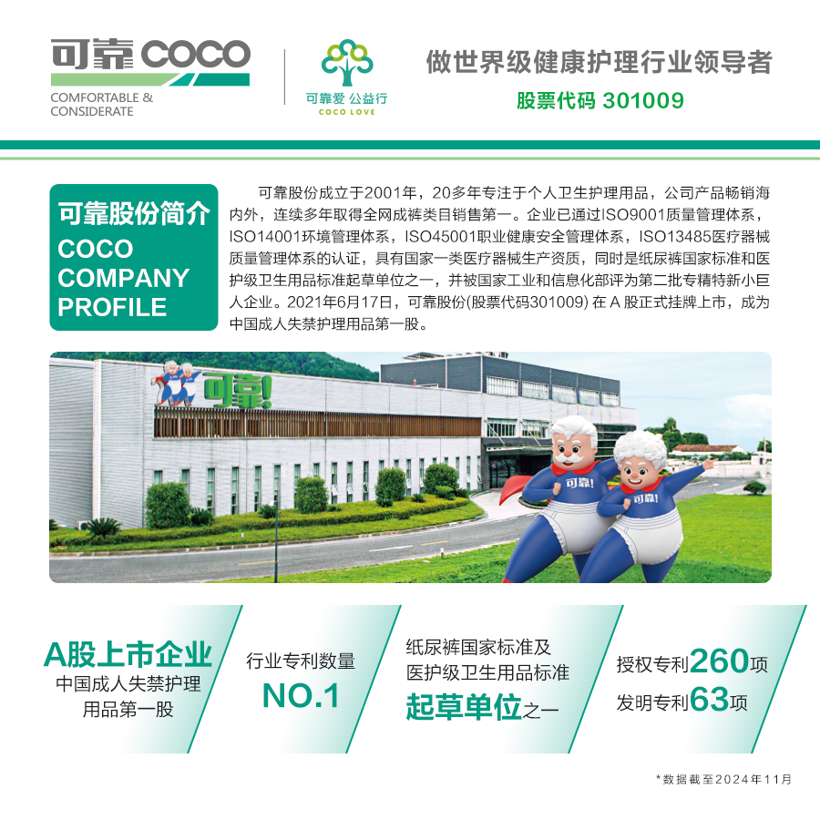 根据《生活用纸和卫生用品行业年度报告》,2017年至2024年,可靠和旗下的可靠品牌在国内成人失禁用品生产商和品牌中综合排名蝉联第一,同时可靠品牌连续多年蝉联电商平台单品类全网销售冠军,并荣获“2025 年度中国卫生用品行业匠心产品”。奖项是对可靠品牌和产品实力的肯定,同时也激励所有可靠家人为持续满足用户需求不断创新突破,砥砺前行,为推动行业高质量发展注入源源动力。